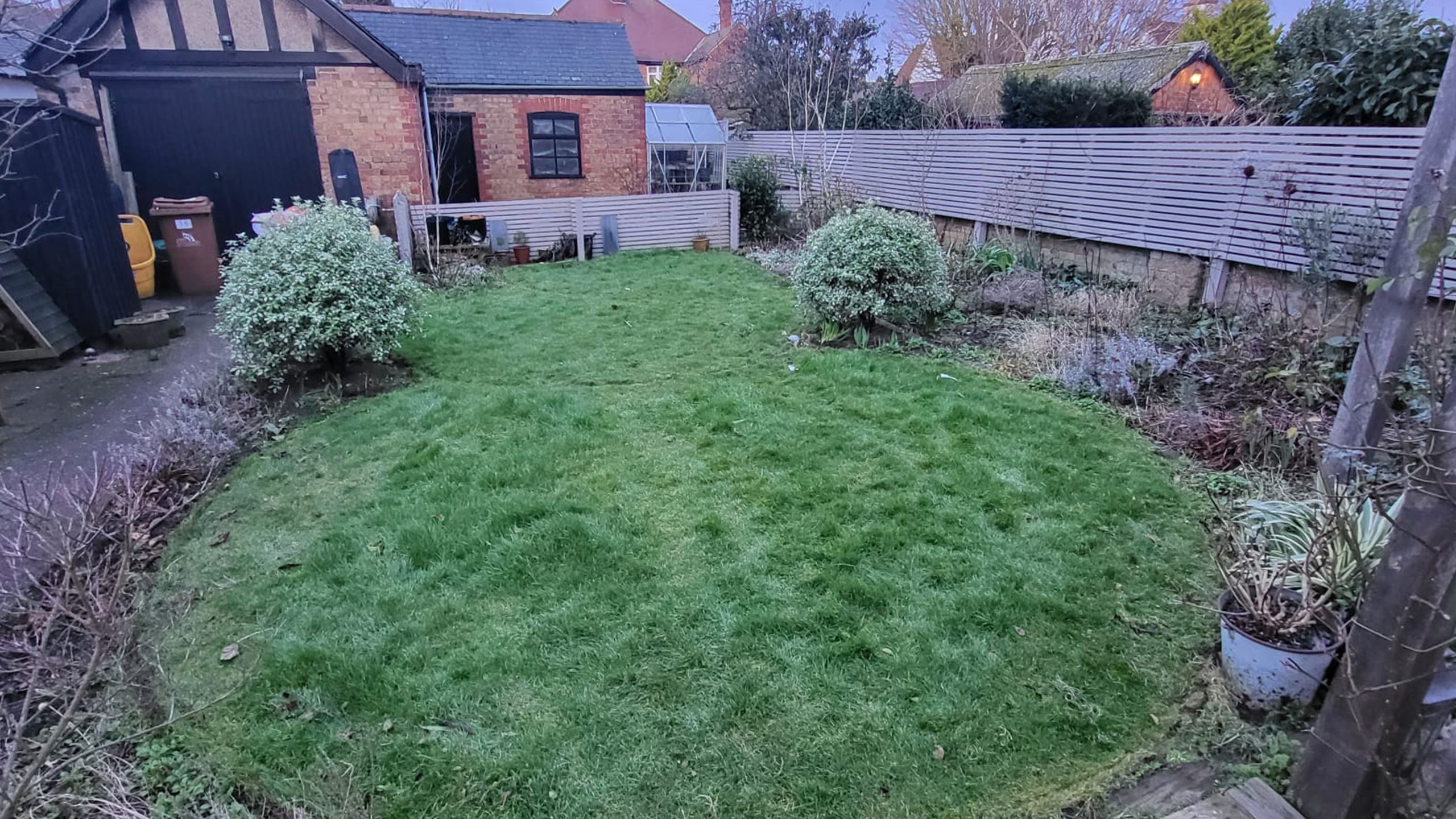 The completed project is a testament to the transformative power of well-executed landscaping. Mr. & Mrs. Barker’s garden now boasts a stunning blend of natural and structured elements, offering a unique outdoor experience that combines the beauty of geometric design with the organic appeal of lush turf. The new space invites relaxation and enjoyment, promising countless memorable moments in a beautifully reimagined setting.