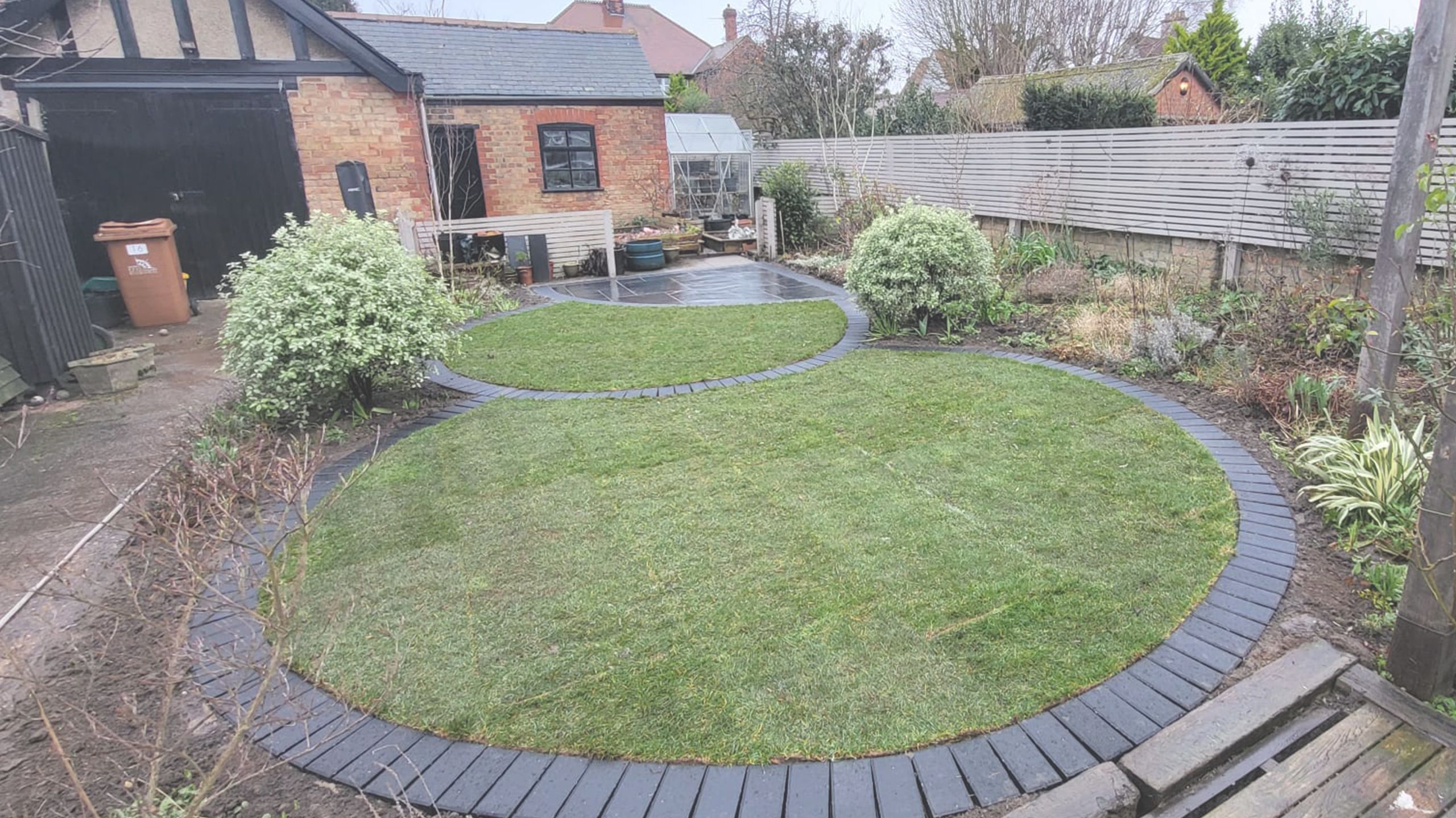 The recent outdoor transformation for Mr. & Mrs. Barker. This project was centred around infusing geometric elegance into the Barker’s garden, featuring a sophisticated quarter-circle patio complemented by interlocking circles, all harmoniously blended with the natural beauty of their outdoor space.
